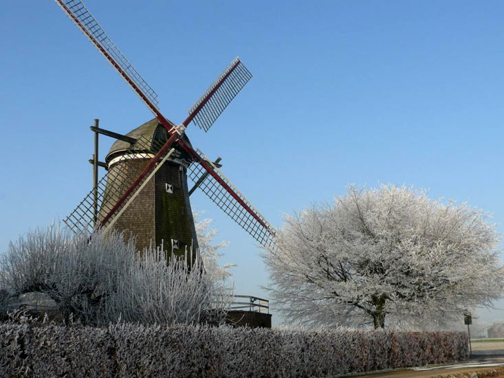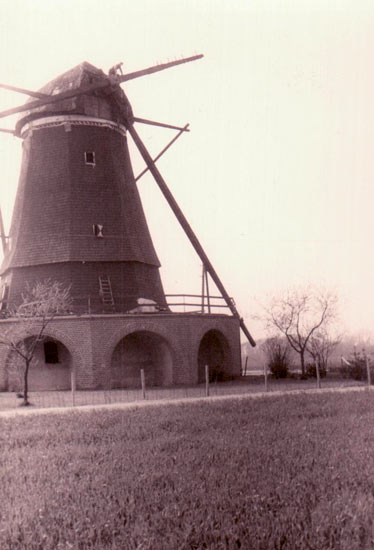 Zur Entstehungsgeschichte dieser Mühle muss man wissen, dass das Dorf Kapellen früher geteilt war. Der nördliche Teil der „Langen-Straße“ gehörte zum Herzogtum Kleve und der südliche Dorfteil mit der Kirche zum Herzogtum Geldern. Die Bauern des Herzogtums Kleve mussten ihr Getreide in der Schravelner Wassermühle vor Kevelaer mahlen lassen, was wegen der langen Wege sehr umständlich war. Daher baute der Gastwirt Peter Heinrich Holl, der in Kapellen auf der nördlichen Seite der „Langen Straße“ wohnte, im Jahr 1797 diese Windmühle in ca 1 km Entfernung vom Dorfmittelpunkt, in Achterhoek, das zur Gemeinde Winnekendonk gehörte.