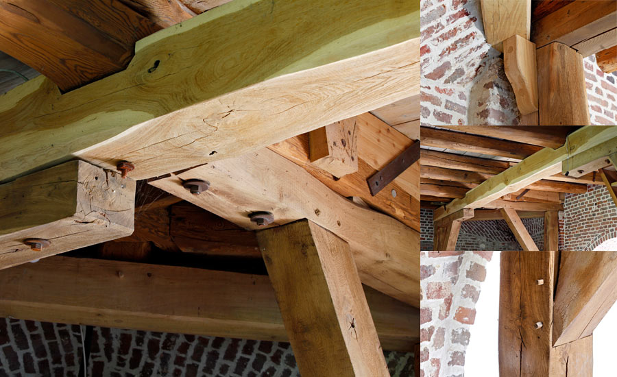 Haupttragebalken im Wendejoch einer Mühlenkappe.