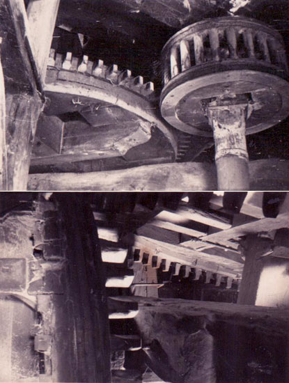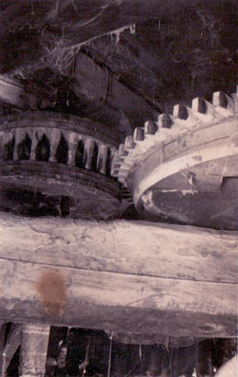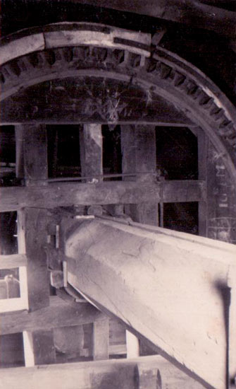 In der Getreidemühle; Antrieb der Steingänge von oben.
